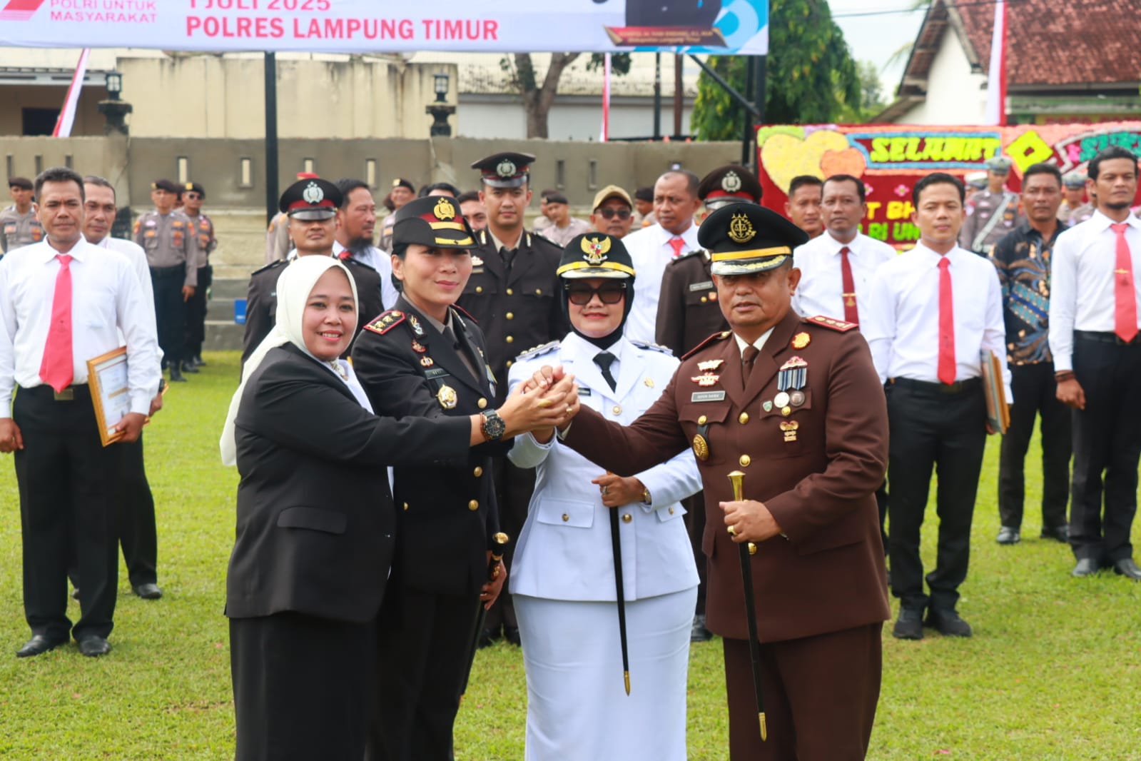 KWRInews.com | LAMPUNG TIMUR – Dalam rangka memperingati Hari Bhayangkara ke-79, Polres Lampung Timur melaksanakan upacara yang berlangsung khidmat pada Selasa pagi (1/7/25). Upacara tersebut dipimpin langsung oleh Kapolres Lampung Timur, AKBP Heti Patmawati, serta turut dihadiri oleh Bupati Lampung Timur, Ela Siti Nuryamah, bersama unsur Forkopimda Kabupaten Lampung Timur.