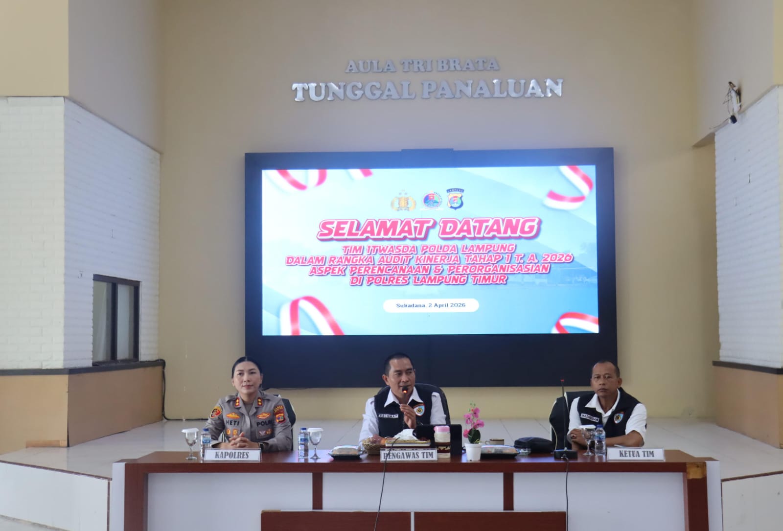 KWRInews.com | LAMPUNG TIMUR – Tim Inspektorat Pengawasan Daerah (Itwasda) Polda Lampung melaksanakan pemeriksaan logistik di Mapolres Lampung Timur, Kamis (2/4/2026). Kegiatan ini dilakukan untuk memastikan kesiapan sarana dan prasarana dalam menunjang tugas kepolisian di wilayah hukum setempat.