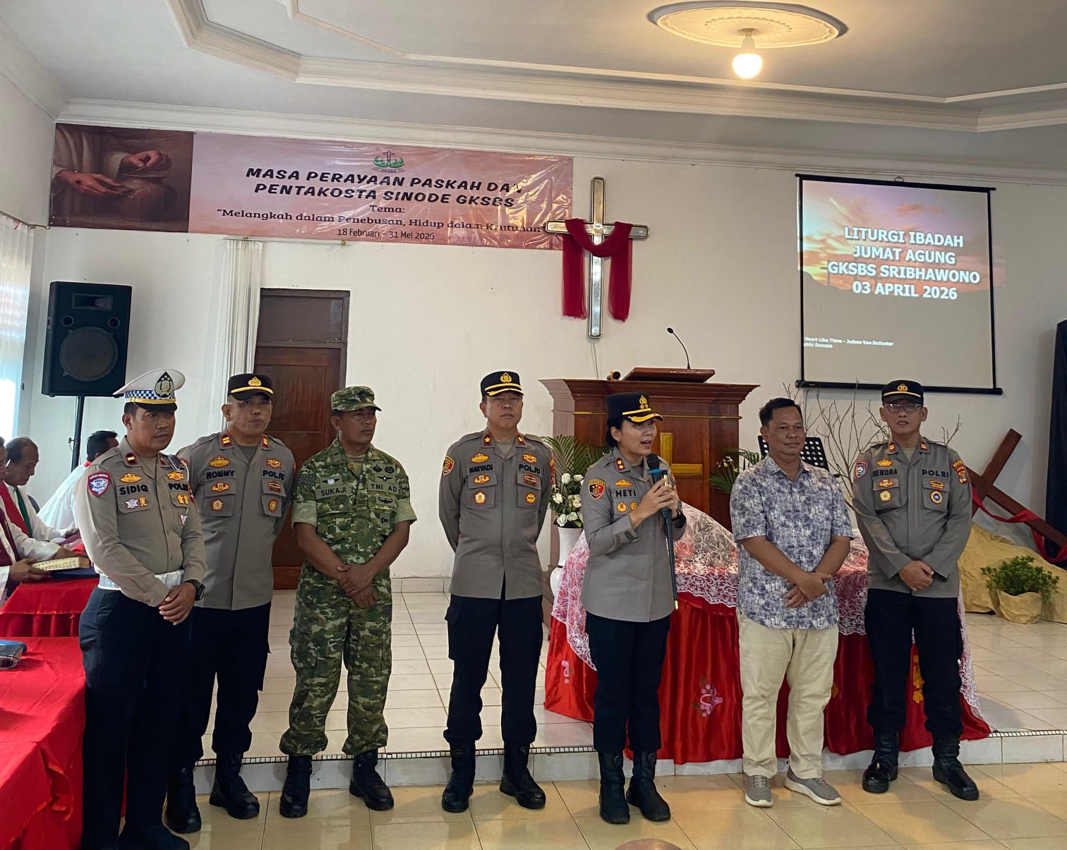 KWRInews.com | Lampung Timur – POLRES LAMPUNG TIMUR– Polres Lampung Timur melaksanakan pengamanan dan pemantauan kegiatan ibadah Jumat Agung dalam rangka peringatan wafatnya Yesus Kristus tahun 2026 yang digelar di Gereja GKSBS Sribhawono, Kabupaten Lampung Timur, Jumat (3/4/2026).