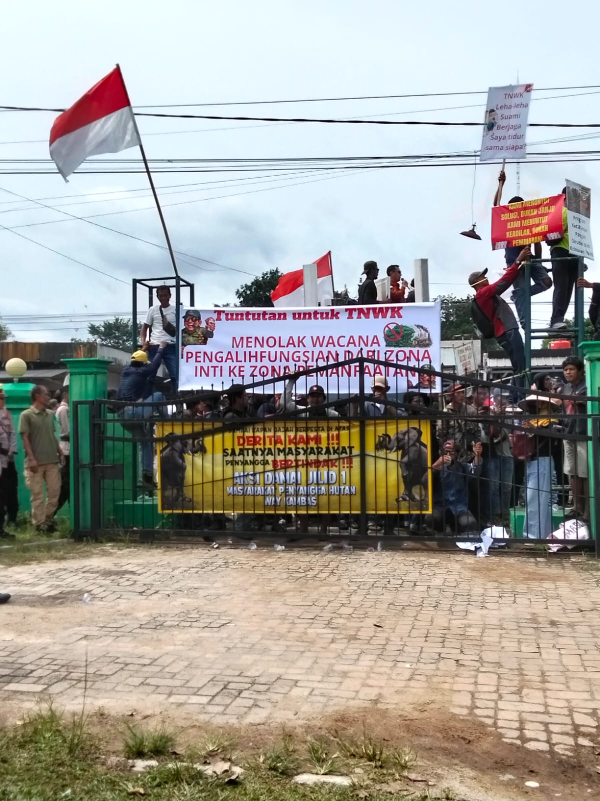 Massa juga secara tegas menolak wacana pengalihan fungsi lahan dari zona inti menjadi zona pemanfaatan, serta mendesak dilakukannya evaluasi menyeluruh terhadap kondisi hutan TNWK dan kebijakan perizinan pemanfaatan lahan.